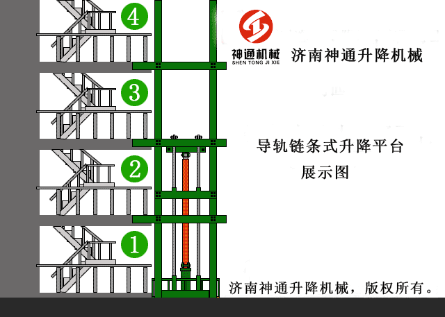 單導(dǎo)軌鏈條式液壓升降平臺(tái)是一種非剪叉式液壓升降機(jī),用于二層以上工業(yè)廠房、餐廳、酒樓貨物運(yùn)輸。由于最低高度僅150-300mm,最實(shí)用于不能開(kāi)挖地坑的工作場(chǎng)所,同時(shí)無(wú)須上部調(diào)點(diǎn),具有多種形式(單跨、雙跨),動(dòng)作平穩(wěn)、操作簡(jiǎn)單可靠,液壓、電器多種貨物傳輸經(jīng)濟(jì)、輕松。(具體承載力及升高層數(shù)、尺寸可根據(jù)用戶(hù)要求設(shè)計(jì)制作)!